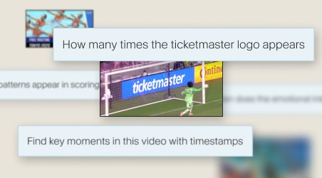 Ask anything about your videos, from counting logos in advertising banners to describing sentiment, scenes, proposing chapter divisions or appearances with corresponding timestamps for unparalleled video intelligence.
