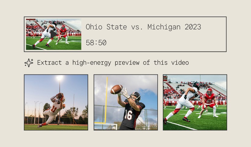 Search across full games with a simple prompt. Find every instance of a specific play, player, or moment. No pre-tagging required.